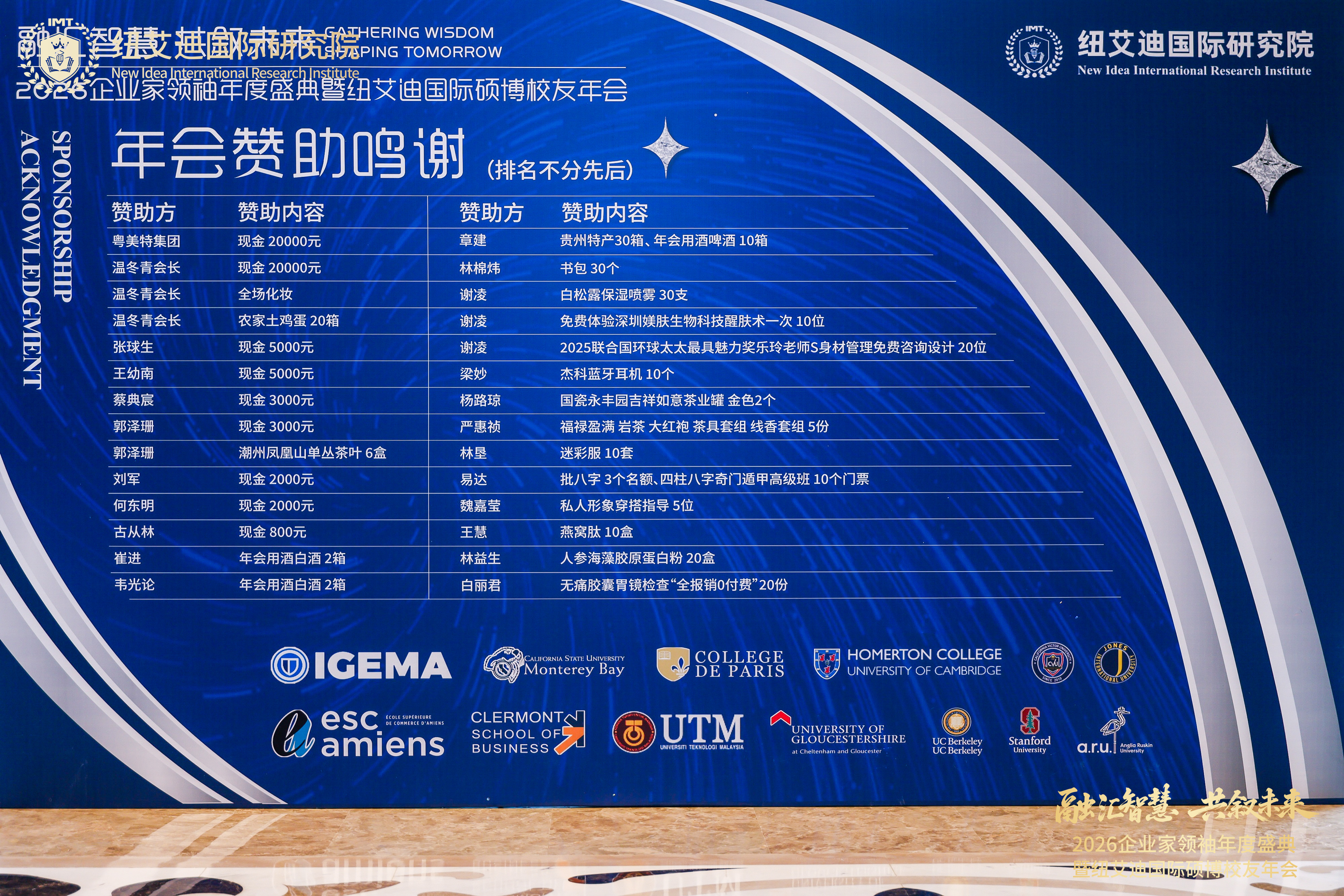 2026年1月25日,以“融汇智慧,共叙未来”为主题的2026企业家领袖年度盛典暨纽艾迪国际硕博校友年会盛